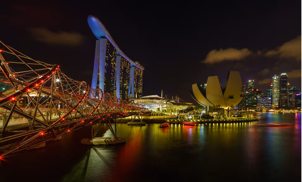 Strategically positioned near the bay, the Helix Bridge provides a unique, up-close view of the fireworks to experience the display from a unique perspective over the water.